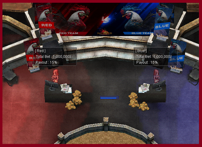 Here, you can place bets on either <mark style="color:red;">**Red**</mark> or <mark style="color:blue;">**Blue**</mark> to win the **Derby Event**. Simply talk to one of the **Derby Event Managers** and wager your zeny.